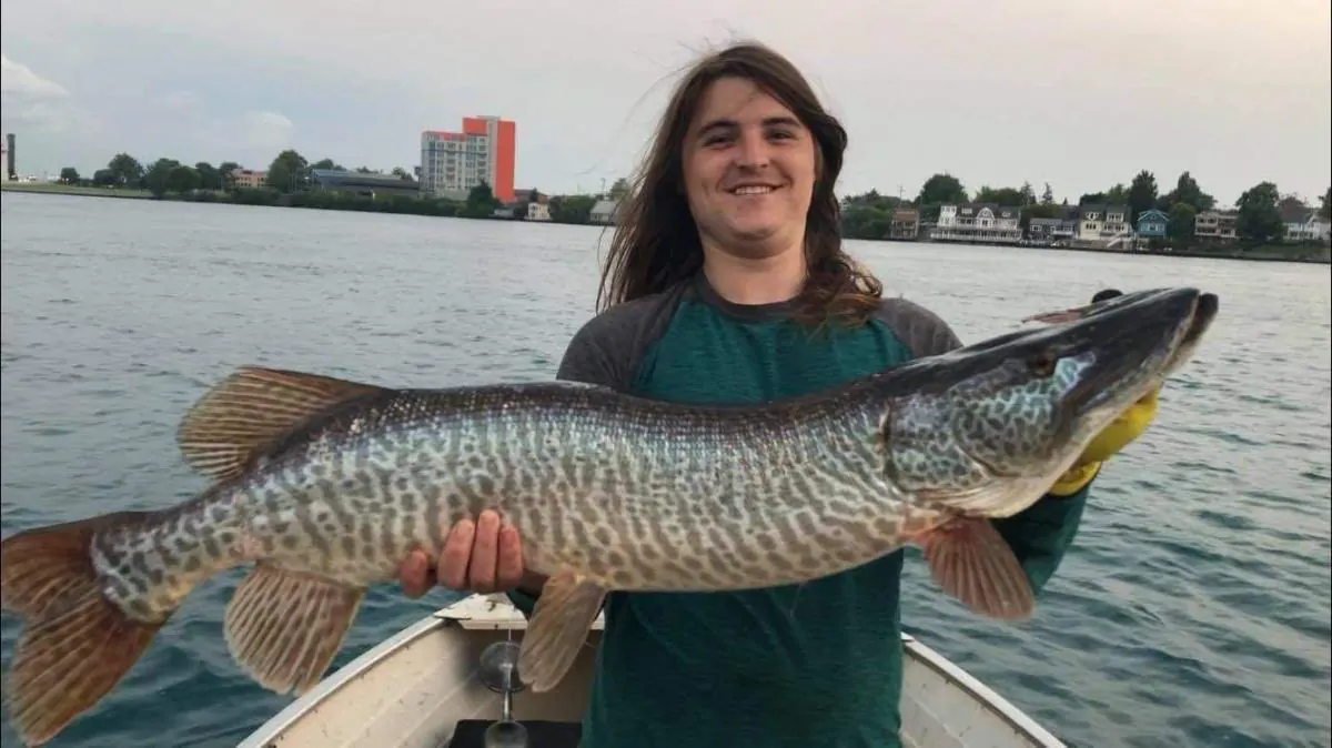 Got this beautiful st.Clair musky on a double 10 Colorado blade shad colour bucktail.